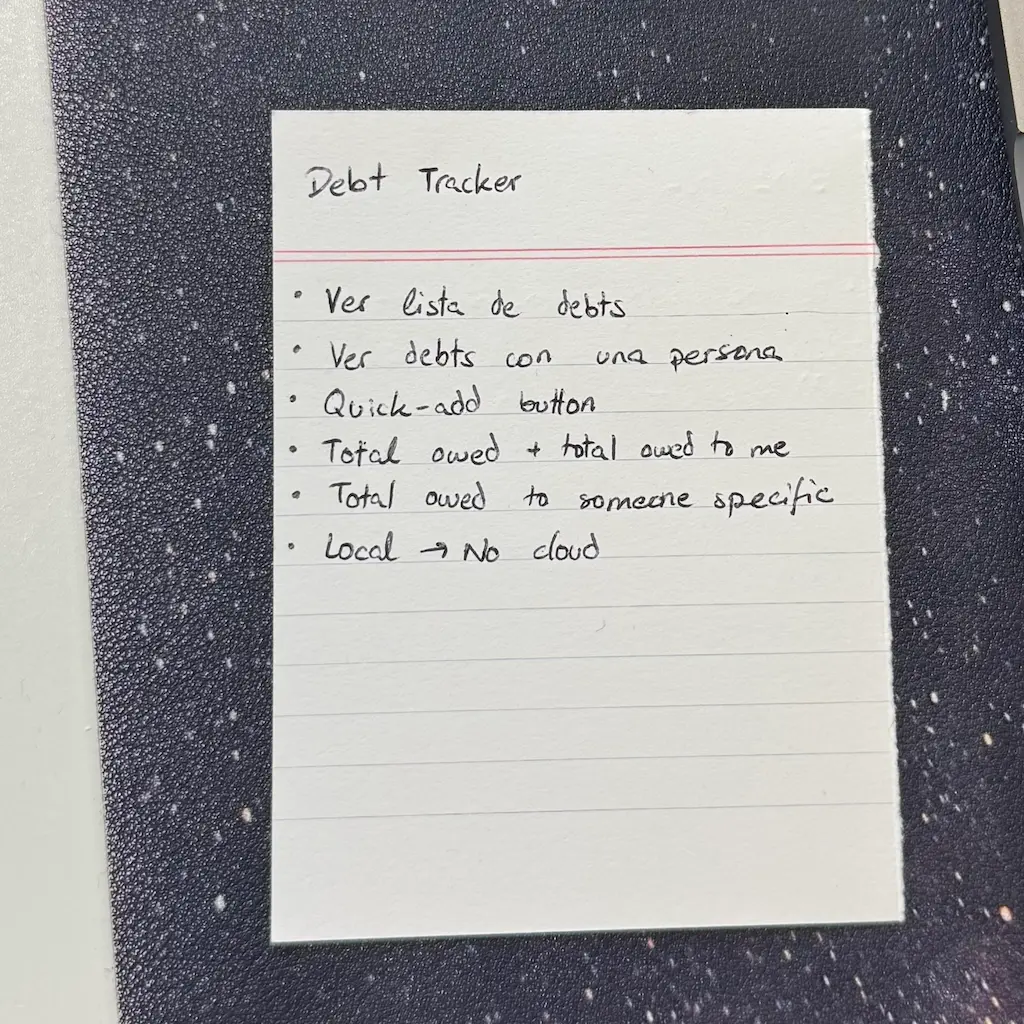 As many developers do, I build things that solve my own problems, however small or silly they may be. So the story is as simple as the following: I found myself forgetting that I had friendly debts with people, or they had them with me. Even my parents borrow some cash from time to time when they needed it and have no time to go to an ATM to get it.